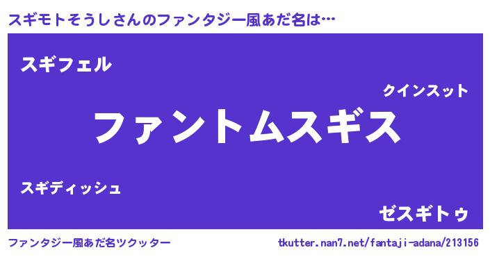 | 意味不明あだ名 | 『とにかく怪しいスギモトそうし』 |