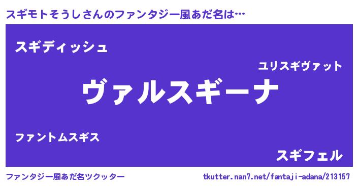 | 意味不明あだ名 | 『住所不定無職スギモトそうし(43歳)』 |