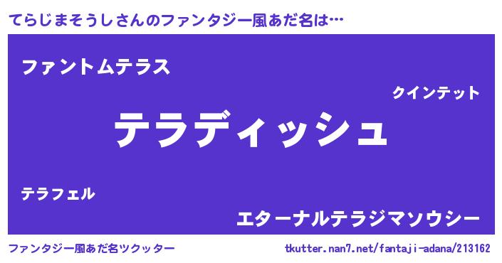 | ヒーロー風カッコイイあだ名 | 『ネオテラジマソウシ』『魔戒騎士テラ』 |