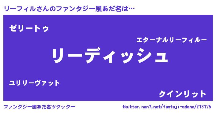 | 意味不明あだ名 | 『永久保存リーフィル』『自称リーフィル』 |