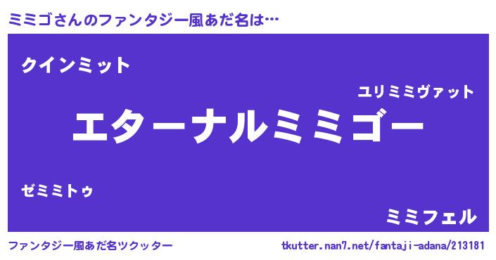 | 意味不明あだ名 | 『ミミゴフォーエバー』『ペロリンミミゴ』 |