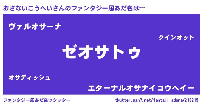 | 男性向けラノベタイトル風あだ名 | 『Re:おさないこうへいから始める異世界生活』 |