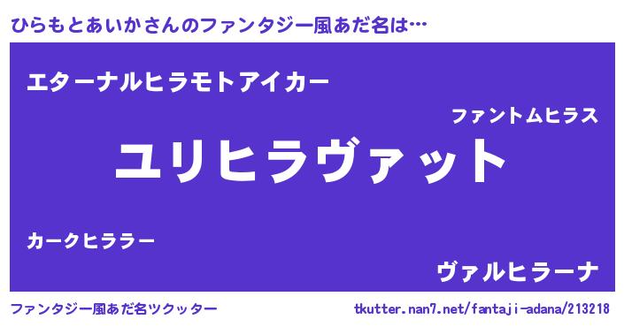 | 女子向けラノベタイトル風あだ名 | 『ひらもとあいかの玉の輿計画!』 |