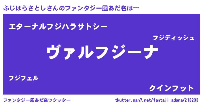 | 男性向けラノベタイトル風あだ名 | 『この素晴らしい世界にふじはらさとしを!』 |