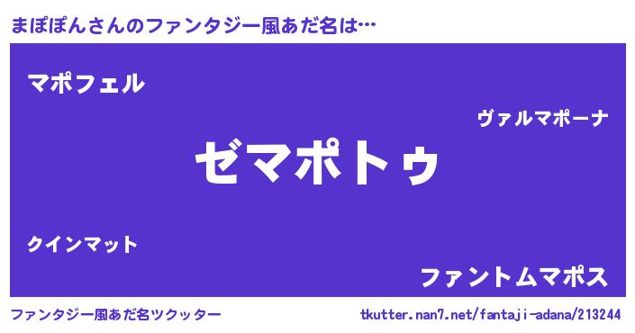 | 欧米人風あだ名 | 『ケンブリッジまぽぽん』 |