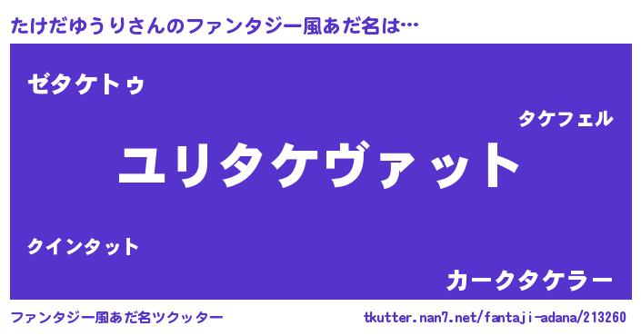 | 肩書あだ名 | 『たけだゆうり少佐』『たけだゆうり総統』 |