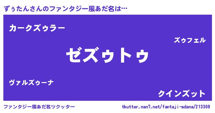 | ヒーロー風カッコイイあだ名 | 『最強戦士ズゥタン』『スーパーズゥタン』 |