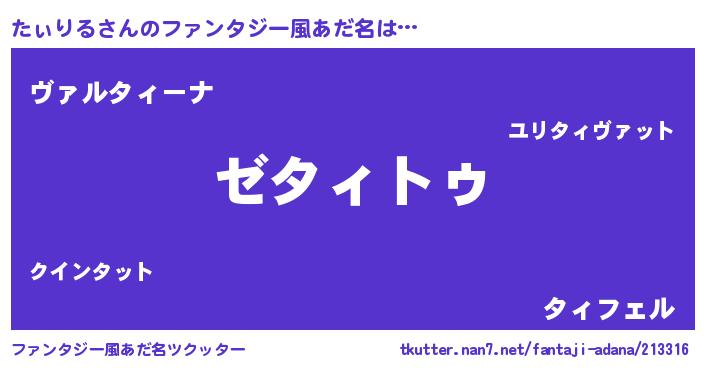 | ヒーロー風カッコイイあだ名 | 『最強戦士タィリル』『仮面タィダー』 |