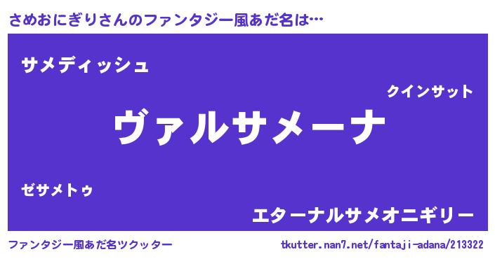 | ポケモン風あだ名 | 『サーメイ』『ゼニサメ』 |