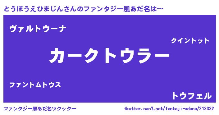 | 意味不明あだ名 | 『住所不定無職とうほうえひまじん(10歳)』 |