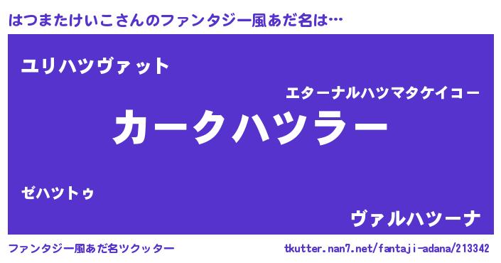 | ヒーロー風カッコイイあだ名 | 『仮面ハツダー』『ネオハツマタケイコ』 |