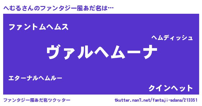 | 男性向けラノベタイトル風あだ名 | 『この素晴らしい世界にへむるを!』 |