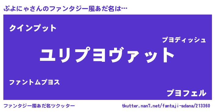 | 欧米人風あだ名 | 『トリンドルぷよにゃ』 |