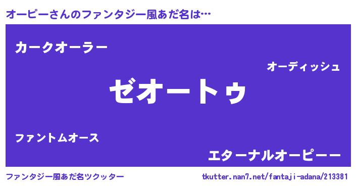 | 女子向けラノベタイトル風あだ名 | 『オーピーアンティーク』 |