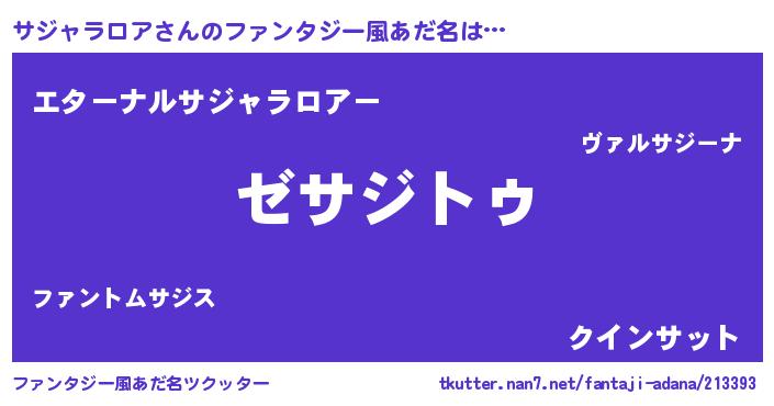 | 男性向けラノベタイトル風あだ名 | 『Re:サジャラロアから始める異世界生活』 |
