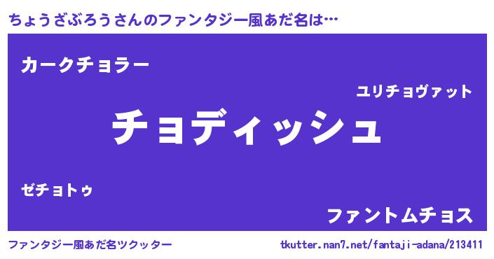 | ヘコむあだ名 | 『ちょうざぶろう(笑)』『ちょ太郎』 |
