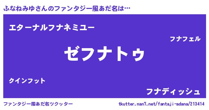 | 意味不明あだ名 | 『自称ふなねみゆ』『永久保存ふなねみゆ』 |