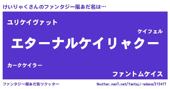 | 女子向けラノベタイトル風あだ名 | 『けいりゃくの雑貨屋さん』 |