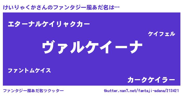 | 男性向けラノベタイトル風あだ名 | 『魔弾の王とけいりゃくか』 |