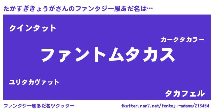 | 男性向けラノベタイトル風あだ名 | 『たかすぎきょうがの嫁は女の子じゃないと思った?』 |