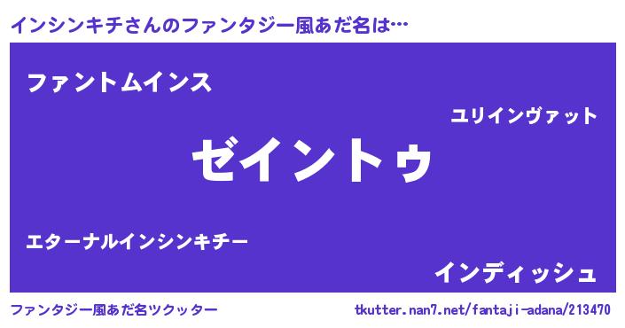 | 意味不明あだ名 | 『自称インシンキチ』 |