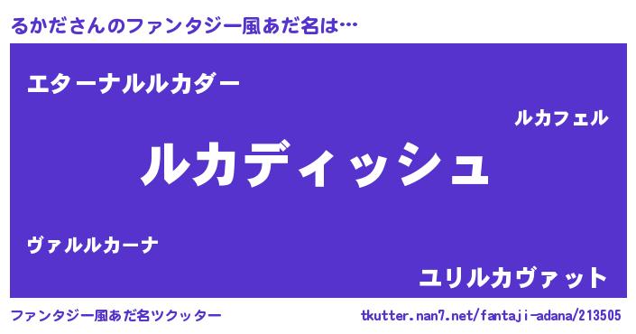 | 意味不明あだ名 | 『永久保存るかだ』『るかだフォーエバー』 |