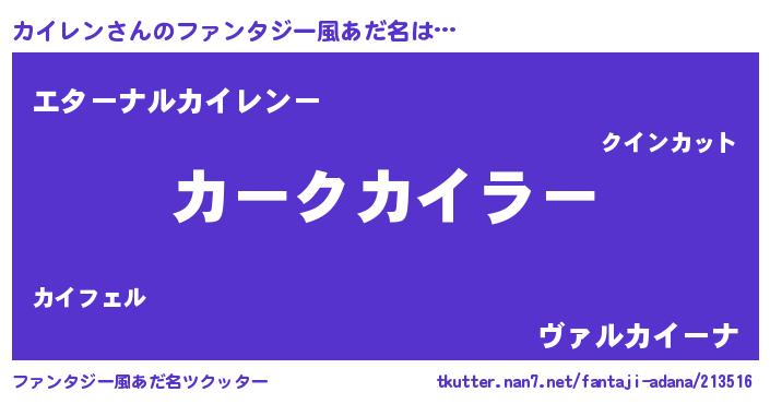 | 意味不明あだ名 | 『カイレンフォーエバー』 |