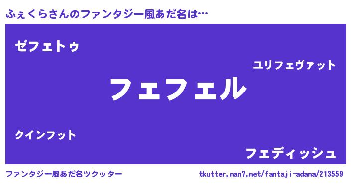 | 意味不明あだ名 | 『ペロリンふぇくら』『自称ふぇくら』 |