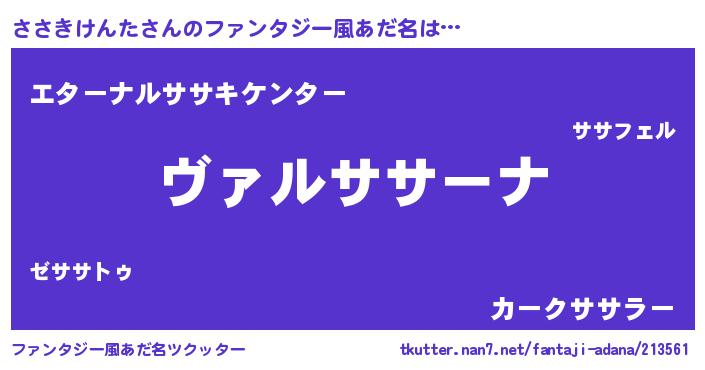 | 男性向けラノベタイトル風あだ名 | 『この素晴らしい世界にささきけんたを!』 |