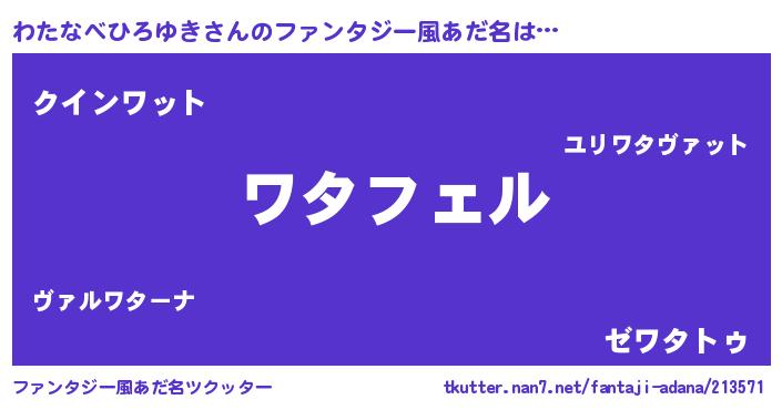 | 女子向けラノベタイトル風あだ名 | 『わたなべひろゆき姫と円卓の騎士』 |