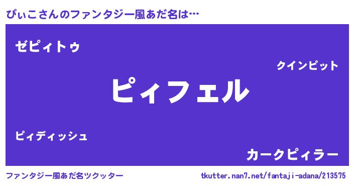 | 意味不明あだ名 | 『ペロリンぴぃこ』『自称ぴぃこ』 |