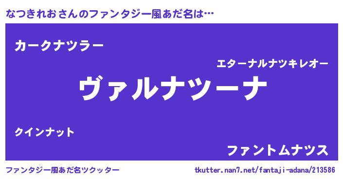 | 意味不明あだ名 | 『住所不定無職なつきれお(71歳)』 |