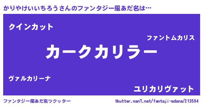 | 男性向けラノベタイトル風あだ名 | 『うちのかりやけいいちろうが世界を掌握している!』 |