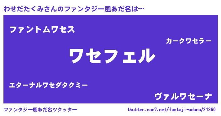 | ポケモン風あだ名 | 『ワセチュウ』『ヒワセダタクミ』 |