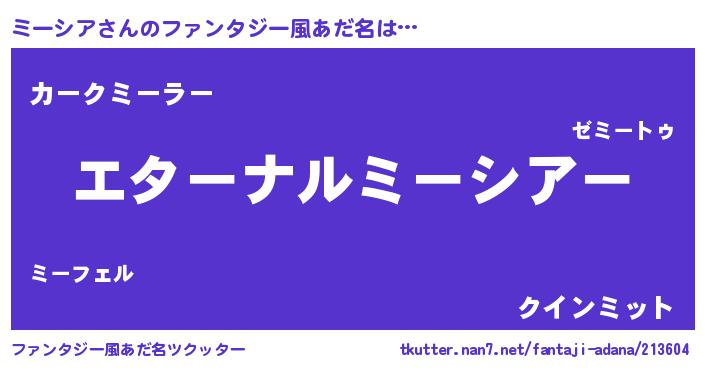 | 欧米人風あだ名 | 『ミーシアクリステル』 |