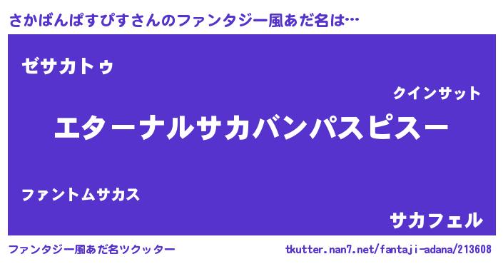 | 意味不明あだ名 | 『さかばんぱすぴすフォーエバー』 |
