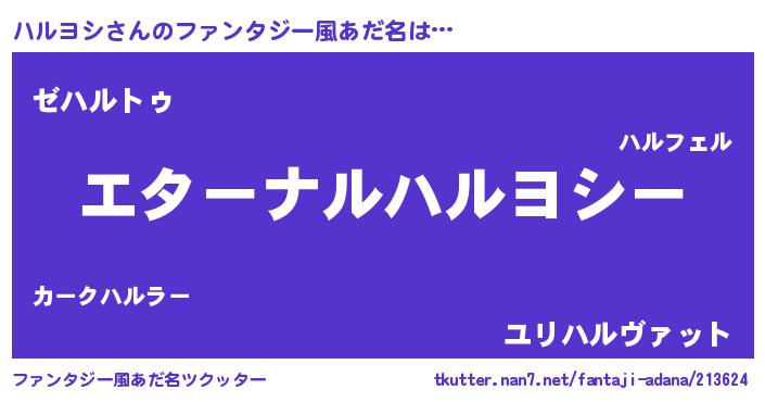 | 男性向けラノベタイトル風あだ名 | 『うちの娘の為ならば、俺はもしかしたらハルヨシも倒せるかもしれない。』 |