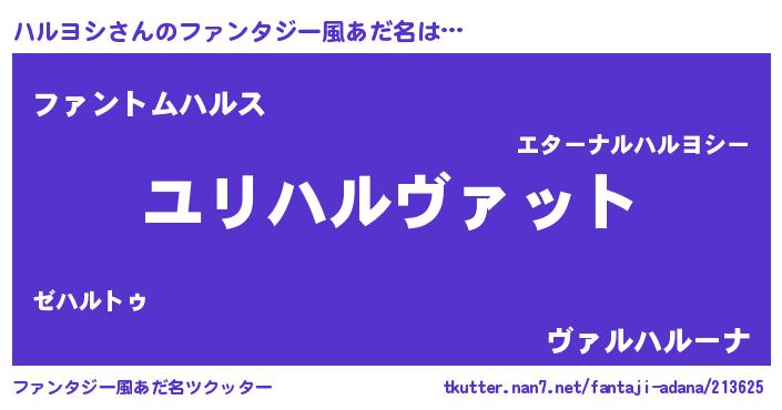| 男性向けラノベタイトル風あだ名 | 『転生したらハルヨシだった件』 |