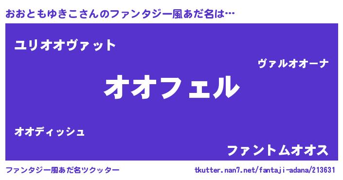 | 男性向けラノベタイトル風あだ名 | 『オオトモユキコアートオンライン』 |
