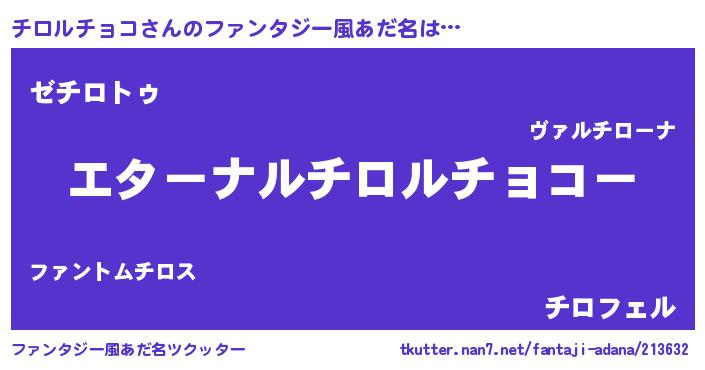 | 意味不明あだ名 | 『チロルチョコフォーエバー』 |