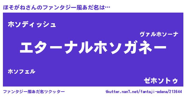 | 意味不明あだ名 | 『ほそがねフォーエバー』『自称ほそがね』 |