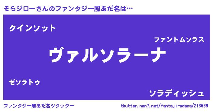 | 男性向けラノベタイトル風あだ名 | 『魔弾の王とそらジロー』 |