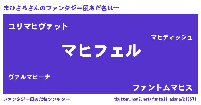 | 自動車の名前っぽいあだ名 | 『マヒティマ』『マールスヒイス』 |