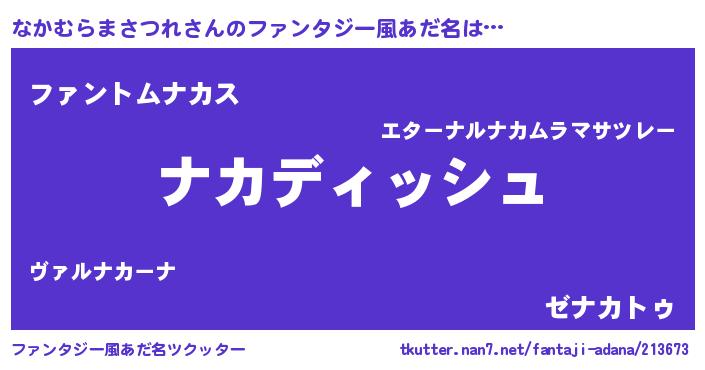 | ヒーロー風カッコイイあだ名 | 『ネオナカムラマサツレ』『幻影騎士ナカ』 |