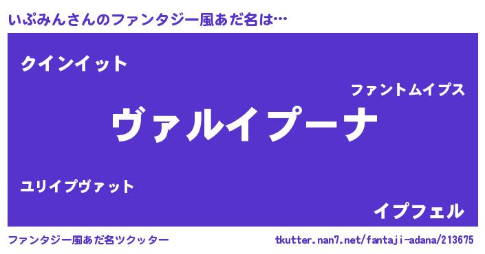 | 男性向けラノベタイトル風あだ名 | 『この素晴らしい世界にいぷみんを!』 |
