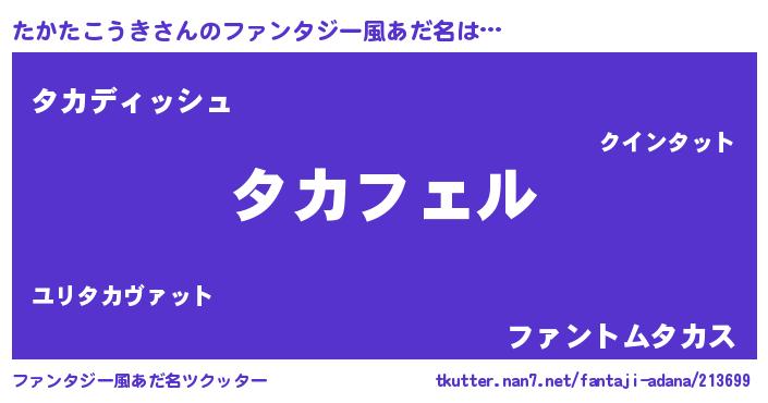 | ヒーロー風カッコイイあだ名 | 『スーパータカタコウキ』『幻影騎士タカ』 |