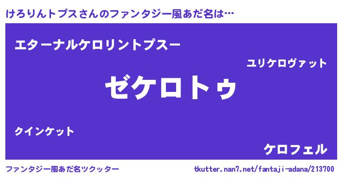 | 意味不明あだ名 | 『自称けろりんトプス』 |