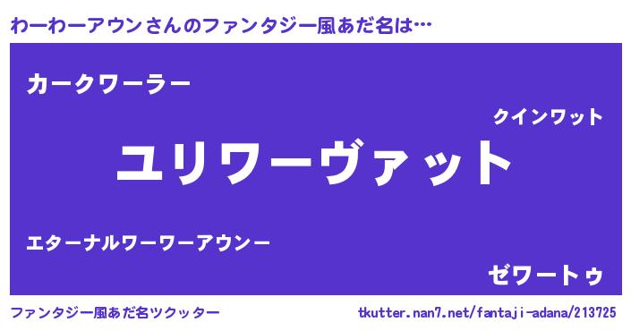 | 男性向けラノベタイトル風あだ名 | 『ワーワーアウンスレイヤー』 |