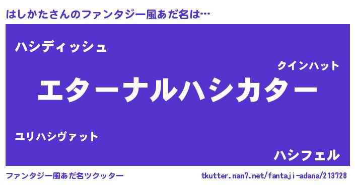 | ヒーロー風カッコイイあだ名 | 『ウルトラはしかたマン』『ネオハシカタ』 |