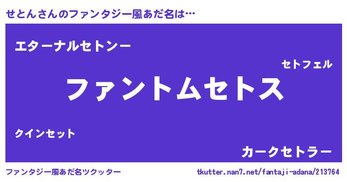| 意味不明あだ名 | 『とにかく怪しいせとん』 |